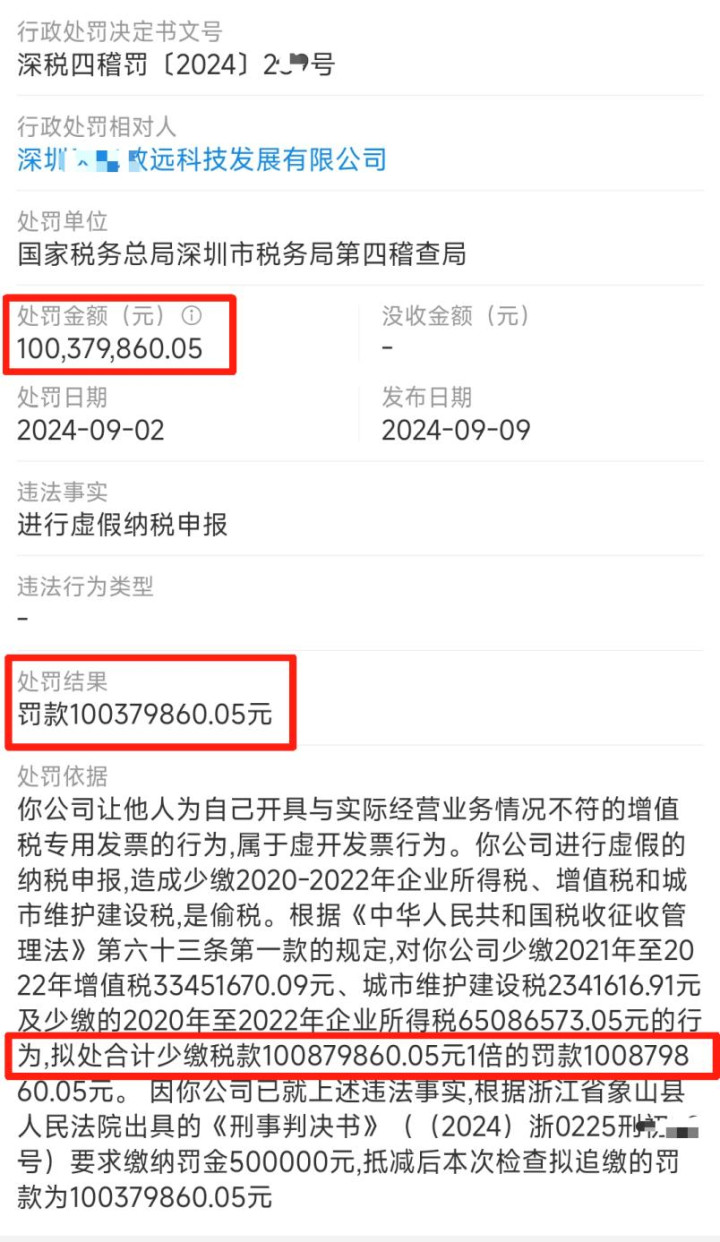 深圳另一家亿级电商大卖,因同样的问题被处以补税和罚款超9500万元 。